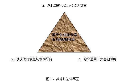 a、基于企業(yè)核心能力構(gòu)建的戰(zhàn)略:對國內(nèi)企業(yè)來講電聲行業(yè)生存易發(fā)展難,發(fā)展的瓶頸仍然來自自身核心能力的挑戰(zhàn)。世界變化的速度越來越快,企業(yè)戰(zhàn)略的制定也越來越強(qiáng)調(diào)本身的彈性和適應(yīng)性,更多體現(xiàn)是一種變化的戰(zhàn)略。對北恩電聲來講目前雖然有一定的市場地位,但更多源于市場的快速成長,“內(nèi)功”仍然很弱,面對下一階段殘酷的“肉搏戰(zhàn)”,北恩電聲核心能力的構(gòu)造成為目前發(fā)展中最緊急和最重要的課題。