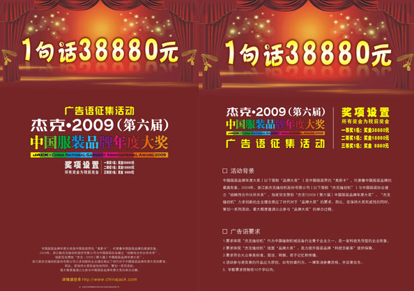 是以,南方略策劃以38880元的高額獎金,向全國公開征集杰克廣告語?;顒訛槠谝粋€月,共收到廣告語作品33678條,來稿作者遍及北京、上海、浙江、河南、福建等三十多個省、直轄市。國內一些知名媒體、創(chuàng)意工作室和策劃公司的專業(yè)人士也寄來了投稿。經(jīng)過南方略項目組與杰克評審團逐一篩選,最終確定“一線科技,盛裝天下”為杰克新的廣告語。