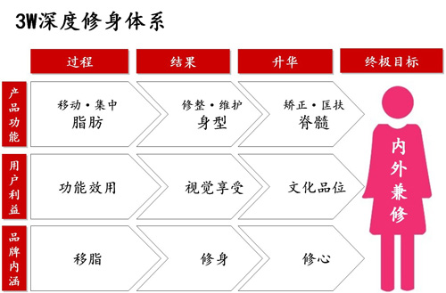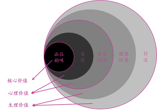 如果說定位“修身內(nèi)衣”是結(jié)合競爭對手、目標群體和自身的資源及能力,找準了可供挖掘差異化的爆破點,那么接下來要做的便是深度挖掘衣馨品牌的核心價值,理順品牌屬性、利益和價值之間的邏輯關(guān)系,打造差異化、持續(xù)化的品牌價值體系。