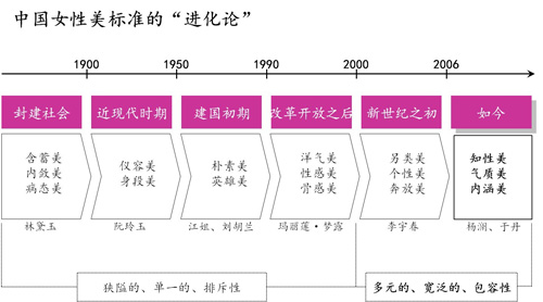 傳統(tǒng)觀念對女性美的界定往往脫不開身材、五官、儀態(tài)和性感度的窠臼。而新一代公眾,則越來越擯棄了庸俗的形式羈絆,而賦予賦予女性美知性、氣質(zhì)和內(nèi)涵的意識空間,讓女性美完成了一次從外延到內(nèi)涵的完美延伸。