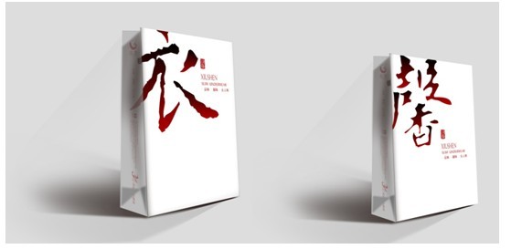 標志圖形當(dāng)中這種根源于中華書法的“別致”,亦沿襲到了衣馨內(nèi)衣的購物袋設(shè)計之中(圖12、圖13):
