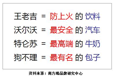 南方略咨詢機(jī)構(gòu)認(rèn)為,定位的本質(zhì)是在消費(fèi)者心智中建立起類似的等式。如果你夠細(xì)心的話,也許你已經(jīng)發(fā)現(xiàn)其中的微妙。紅色字體部分(防上火、安全、高端、有名)其實(shí)是品牌的價(jià)值屬性;而藍(lán)色字體部分(飲料、汽車、牛奶、包子)則是品牌的市場選擇所在。市場選擇界定了品牌將會(huì)“在哪里競爭”,價(jià)值屬性則明確地回答了品牌“憑什么去競爭”。品牌之所以要定位,不就是為了有利于市場競爭么?這就是為什么競爭大師麥克·