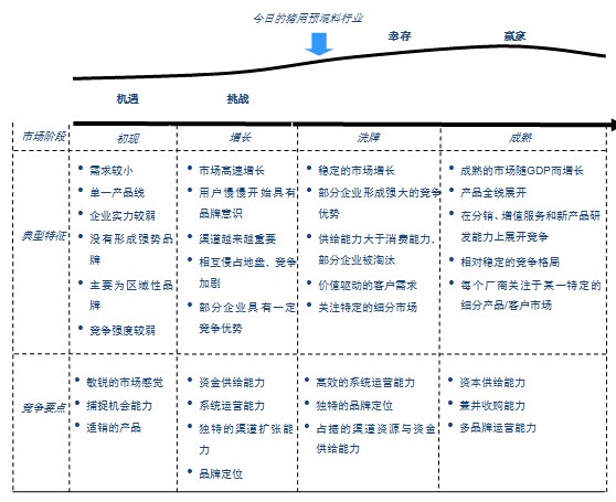 隨著養(yǎng)殖業(yè)的集約發(fā)展,飼料行業(yè)也不斷呈現(xiàn)集中趨勢,大規(guī)模養(yǎng)殖企業(yè)憑借天然的成本控制優(yōu)勢,以及自繁自養(yǎng)帶來的規(guī)避周期性風(fēng)險(xiǎn)能力,不斷擴(kuò)充發(fā) 展,但受制因素主要表現(xiàn)為土地和環(huán)保。全球3800家大型飼料企業(yè),占據(jù)配合飼料80%市場份額,單個(gè)企業(yè)年平均產(chǎn)量近15萬噸,美國的單個(gè)企業(yè)年平均產(chǎn)量約45萬噸。而中國目前共有大大小小13000家飼料加工單位,年產(chǎn)1.4億噸飼料,從業(yè)工人50萬人,單個(gè)企業(yè)年平均產(chǎn)量不足1萬噸。由此,飼料行業(yè)的毛利現(xiàn)狀給予企業(yè)更多的整合上下游資源的動(dòng)力,完善產(chǎn)品線、聚焦區(qū)域發(fā)展為行業(yè)整合加速。中國飼料企業(yè)總產(chǎn)能約3.5億噸,但實(shí)際產(chǎn)量只有1.4億噸,產(chǎn)能利用率僅為40%,而周期性發(fā)展趨勢則創(chuàng)造了整合的可能性。如新希望和六和,通威和粵華粵海,荷蘭泰高和北京德佳,英國ABNN和遼河。中國豬用預(yù)混料行業(yè)正處于增長階段后期(如下圖),豬用預(yù)混料企業(yè)既要抓住歷史性機(jī)遇,又要為洗牌階段做好準(zhǔn)備。