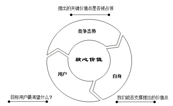 品牌核心價(jià)值的提煉基于三方面:用戶需要什么?競品沒有什么?我們有什么?如下圖所示:
