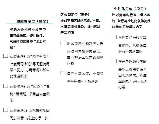 功能性定位是針對以外國品種、期望更高效益的用戶來說,該品牌是一個(gè)以因地制宜為核心價(jià)值,理性、進(jìn)取、專業(yè)的解決外國引種水土不服的專家,它能使用戶改善養(yǎng)豬效益,更適應(yīng)中國的管理現(xiàn)狀、硬件條件以及氣候環(huán)境,因?yàn)樗哂刑厥獾牟荼九浞?、特定的微生態(tài)、國際化機(jī)構(gòu)信任背書。