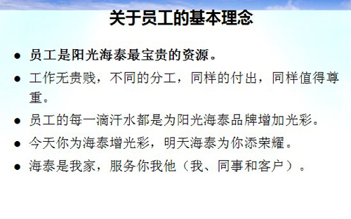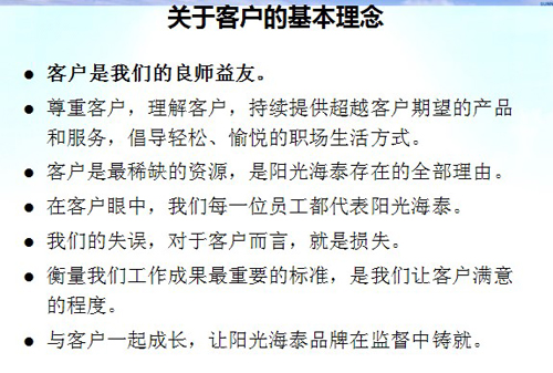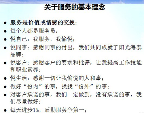 陽光海泰的基本服務(wù)理念包含客戶、員工和服務(wù)三個部分: