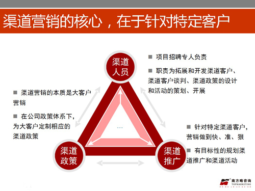 2、寫字樓產(chǎn)品因單價(jià)較高,且劃分面積較大等因素,前期客戶意向度不高,項(xiàng)目組成員經(jīng)過(guò)梳理,提出“高門檻”及“金融業(yè)”與兩大項(xiàng)目特性,進(jìn)一步得出項(xiàng)目寫字樓部分以:高端投資客(純投資)、企業(yè)型客戶(自用+投資)、泛金融行業(yè)(保險(xiǎn)、證券、銀行、信托等自用為主)及中小金融業(yè)(以投資理財(cái)、資產(chǎn)管理為主的金融服務(wù)業(yè))為主要渠道,組建專門的渠道營(yíng)銷小組,制定相應(yīng)渠道政策,結(jié)合有目標(biāo)性的渠道推廣及渠道活動(dòng)進(jìn)行大客戶渠道定向營(yíng)銷。