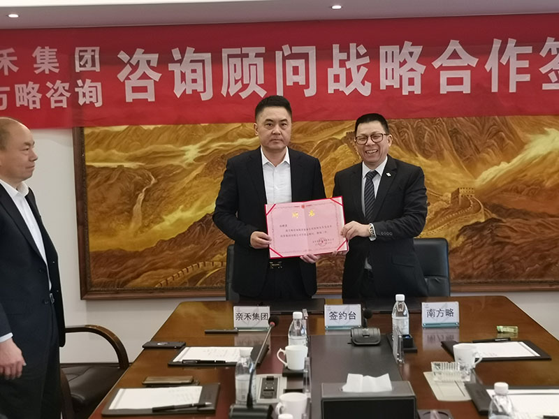 2021年11月20日,為進一步推動集團高質(zhì)量規(guī)模化發(fā)展戰(zhàn)略,重慶親禾集團與南方略咨詢在親禾集團總部正式簽訂《咨詢顧問戰(zhàn)略合作協(xié)議》,南方略咨詢董事長劉祖軻老師、副總裁王清華老師與親禾集團董事長鄧華先生、副總裁左久林先生等兩家公司的主要領(lǐng)導(dǎo)集中到場,共同參與和見證了此次合作。