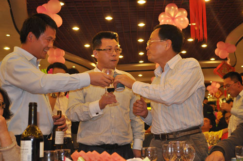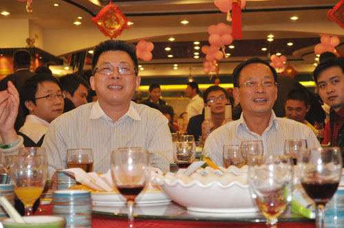 劉祖軻董事長和三和國際董事長張華觀看三和國際年度晚會(huì)