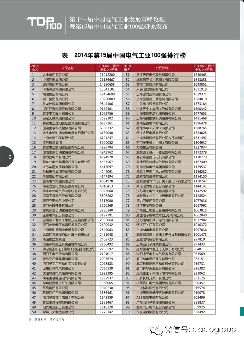 據(jù)了解,由中國機械工業(yè)聯(lián)合會、機械工業(yè)信息研究院、中國電器工業(yè)協(xié)會等單位指導(dǎo),行業(yè)權(quán)威媒體電氣時代雜志社主辦的中國電氣工業(yè)100強研究活動至今已舉辦了14屆,其研究基礎(chǔ)數(shù)據(jù)來源于國家有關(guān)部門和相關(guān)行業(yè)組織,以企業(yè)年度產(chǎn)品銷售收入為依據(jù)排出電氣百強名單。由于其研究過程的公正權(quán)威,其100強排行榜和100強分析報告已成為中國電氣工業(yè)發(fā)展的年度盤點和參考坐標(biāo)。