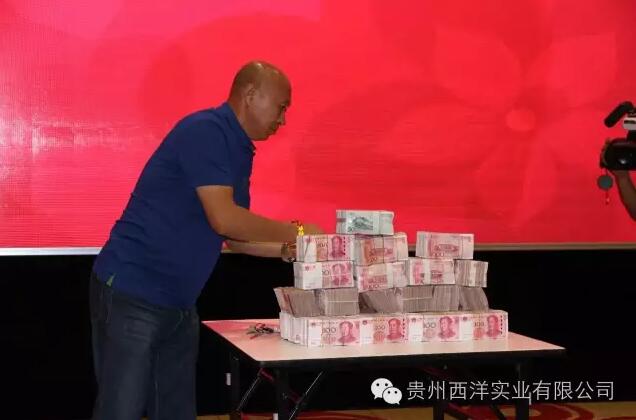 現(xiàn)場數(shù)百萬現(xiàn)金擺放于會場前方,等待著經(jīng)銷商分享企業(yè)發(fā)展的紅利。