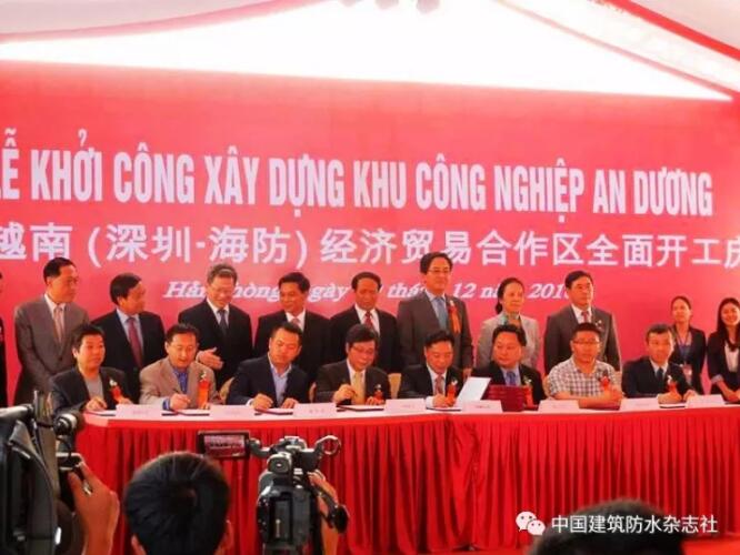 在深圳國(guó)際機(jī)場(chǎng)有一塊由深圳市經(jīng)信委和深圳市國(guó)資委打的廣告牌:“中國(guó)·越南(深圳-海防)經(jīng)濟(jì)貿(mào)易合作區(qū),一帶一路 示范工程”。這個(gè)被深圳市政府部門(mén)稱(chēng)為一帶一路示范工程的經(jīng)貿(mào)合作區(qū),來(lái)頭可真不小。它是習(xí)近平主席2015年訪越的重要成果之一,國(guó)家級(jí)的境外經(jīng)貿(mào)合作區(qū),海上絲綢之路走出國(guó)門(mén)的第一站,深圳市首個(gè)境外產(chǎn)業(yè)發(fā)展基地。它由深圳投資控股有限公司投資、深越聯(lián)合投資有限公司承建。深圳卓眾之眾防水技術(shù)股份有限公司為其供應(yīng)了防水材料。
